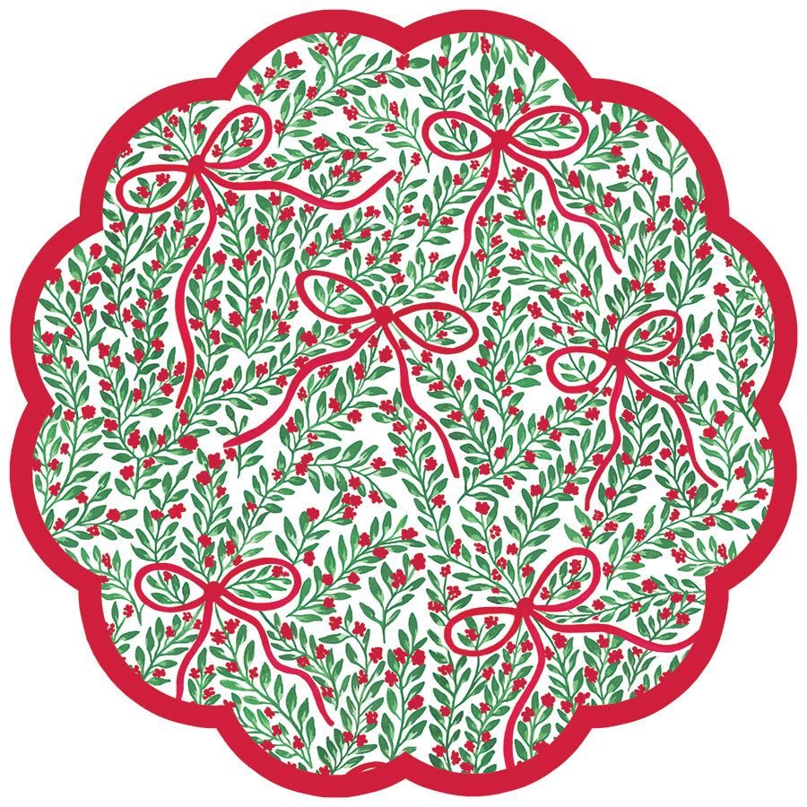 Add a chic accent to your table with Lucy Grymes bow scalloped paper placemats. The bow design is the perfect addition to any holiday table. Liven up your entertaining easily, and just recycle these disposable paper placemat when you are finished.