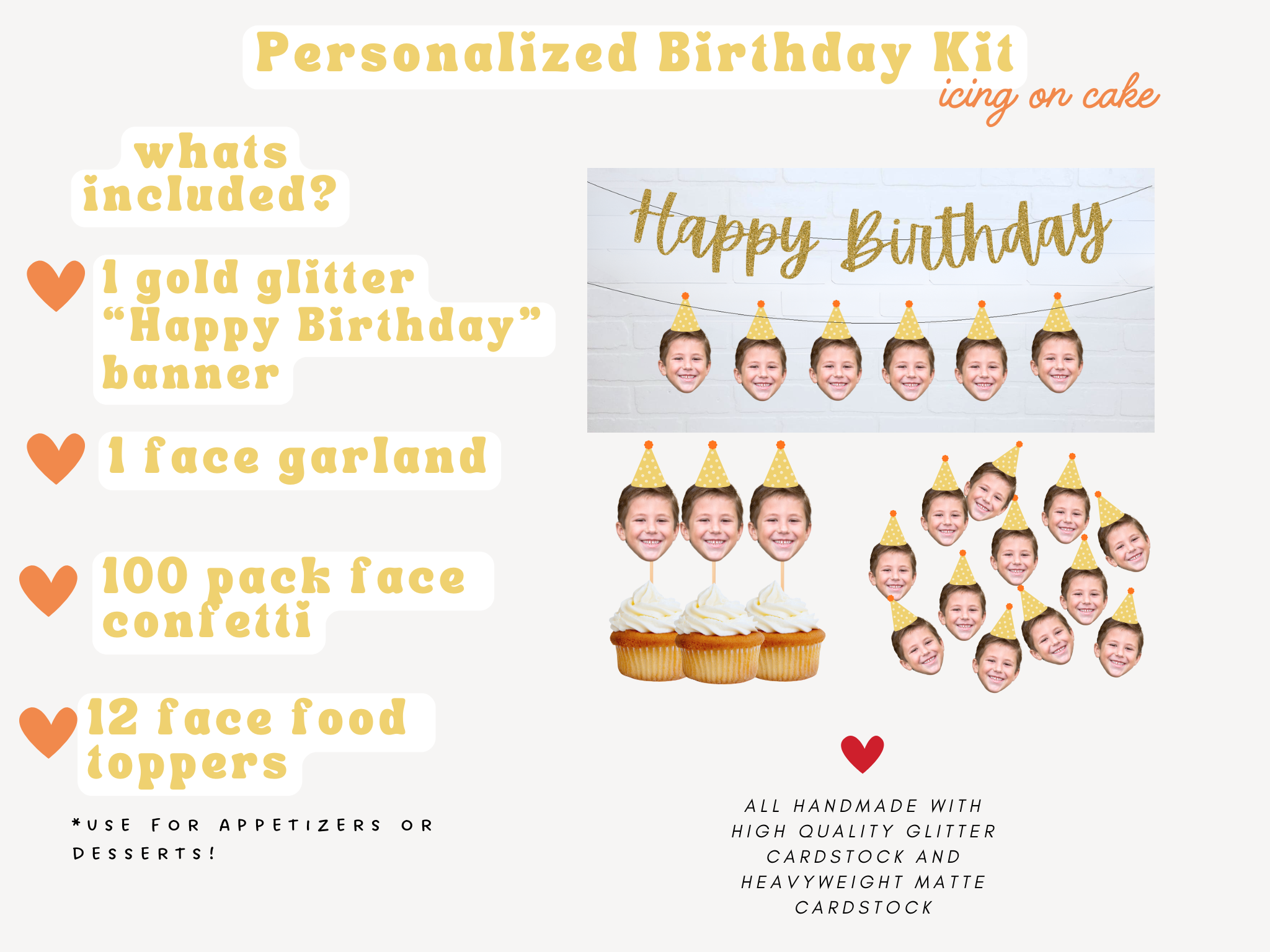 Make your child’s birthday feel extra special with a party that features their smiling face everywhere. Our Custom Birthday Party Kit turns your favorite photo into fun, playful decorations that make the birthday child the star of the celebration.