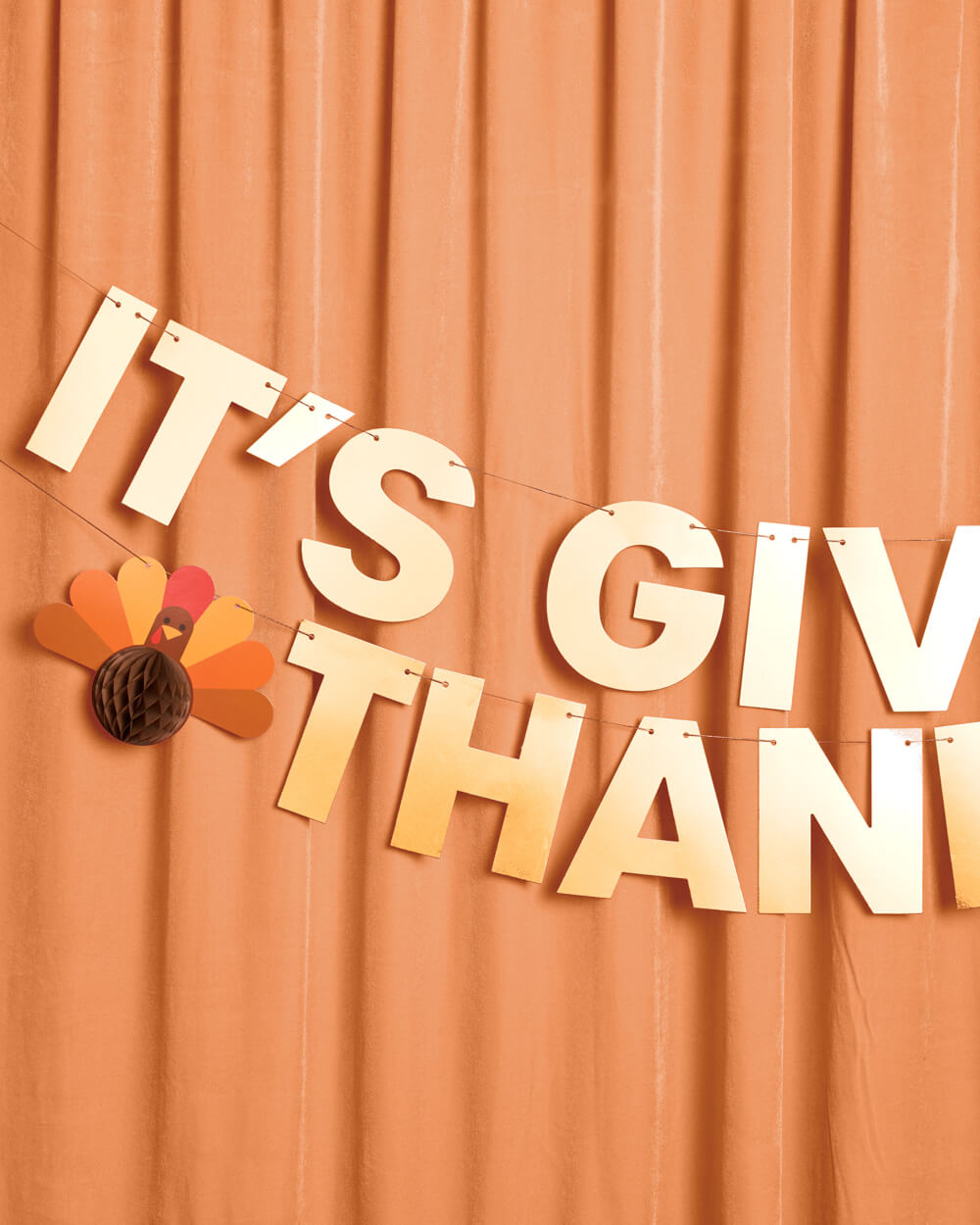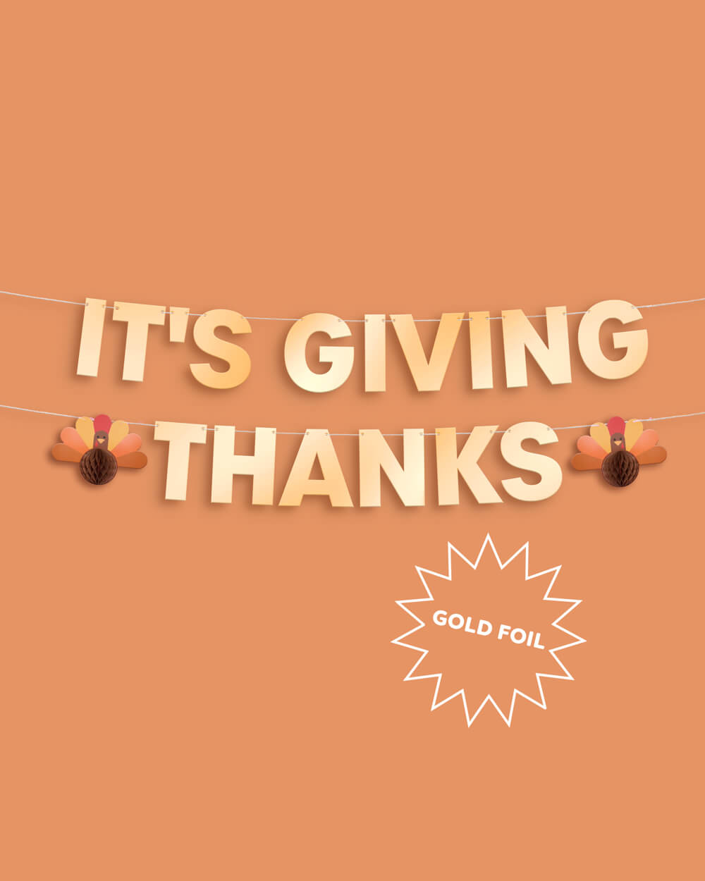 - Gold foil "It's Giving" + "Thanks" banners 5'