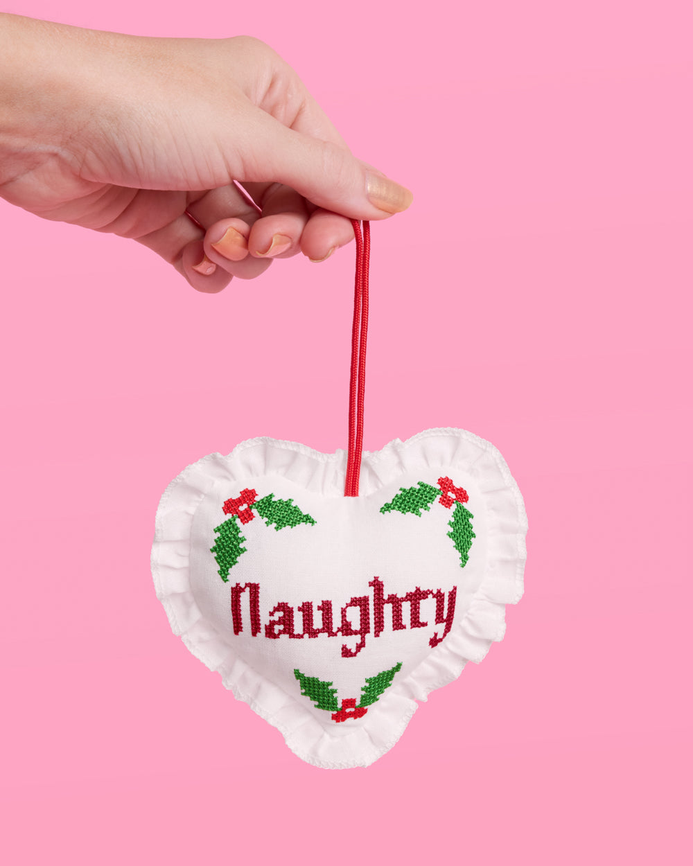 - Naughty or nice cross stitch ornament, 1 pc, double sided print