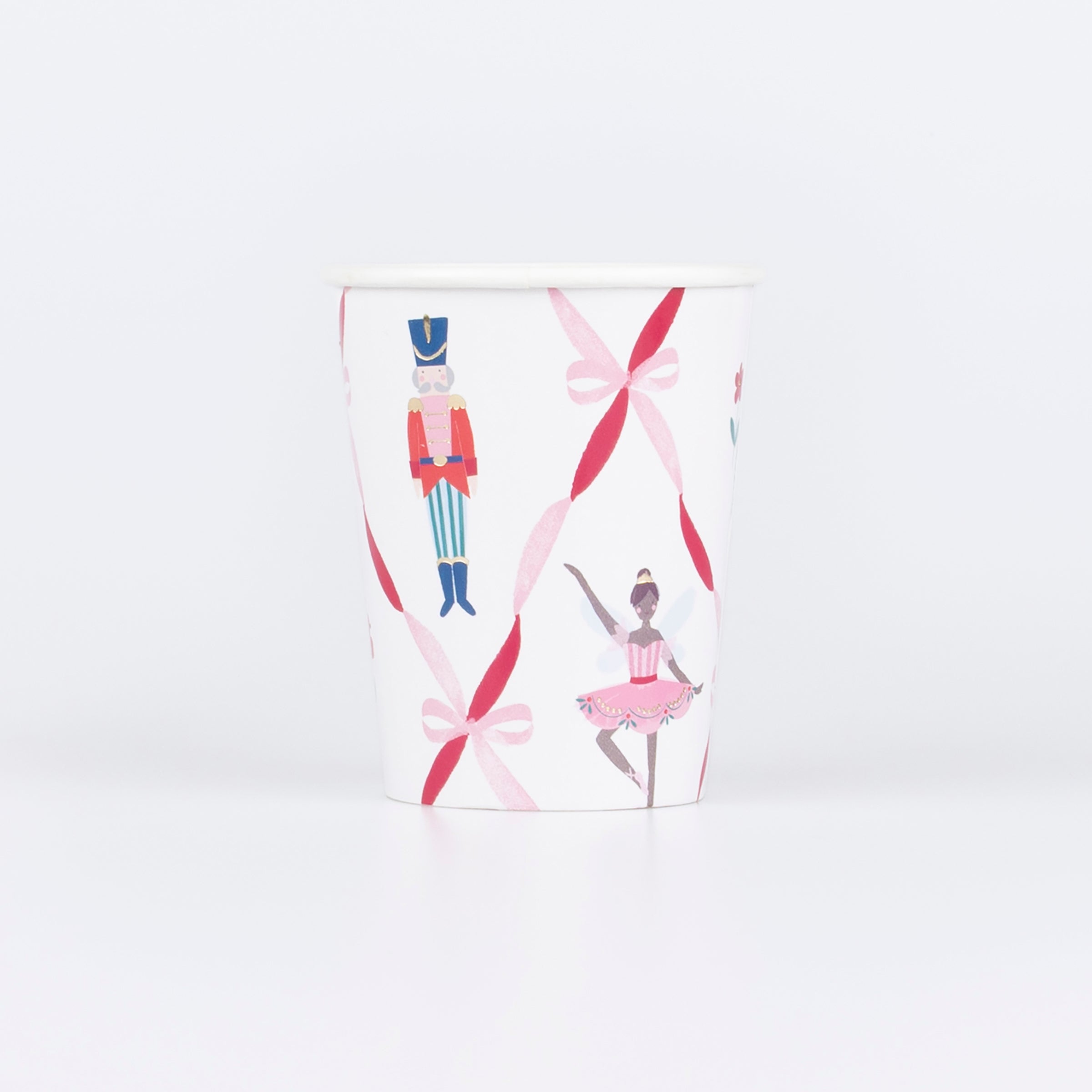 Bring the timeless magic of the Nutcracker ballet to your party table with these premium paper cups. They feature iconic characters and fashionable bows, in a stylish blend of classic and modern Christmas colors, to effortlessly capture the charm of this enchanting fairy tale. A chic and practical way to add a touch of tradition to your celebrations.