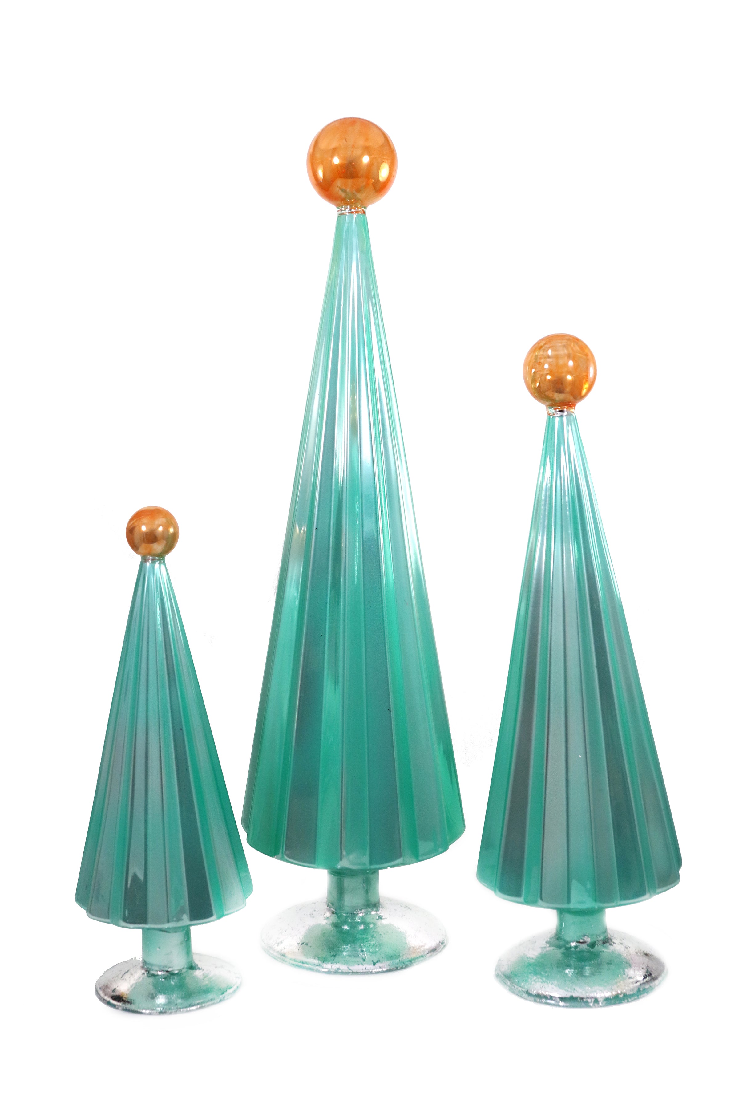 Bold and bright, this set of pleated trees in mint and orange adds an avant-garde flair to festive scenes.