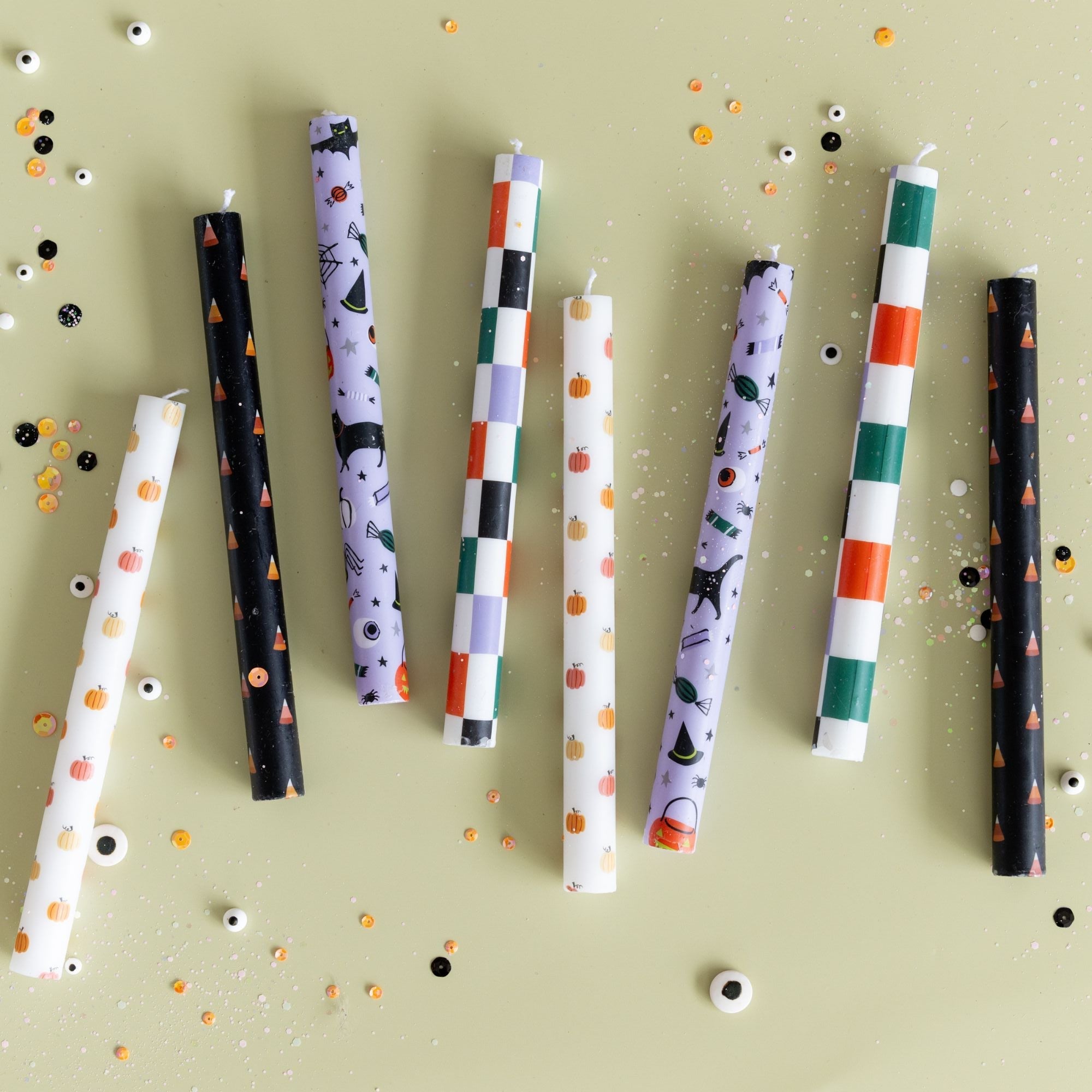 Set the table aglow with these pumpkin-shaped taper candles! A charming way to bring warmth and whimsy to your haunted home.